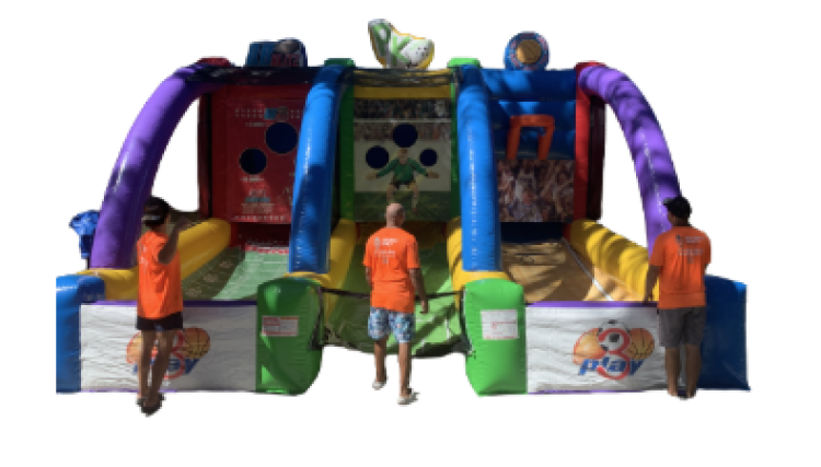Introducing the ultimate in entertainment!!! This huge 3-In-1 Sports Game, provides endless fun for kids and adults alike. This is the perfect addition to your next backyard party, corporate event, community event, or festival. Dimensions: 21'L x 18'W x 16'H.